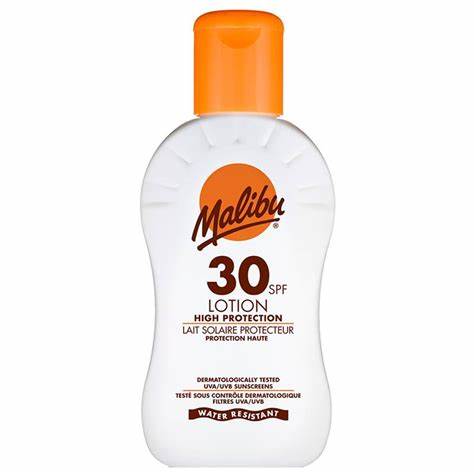 - Water Resistant: Malibu’s amazing formula is very water resistant meaning it is ideal for on holiday, days out, waterparks, jumping in the pool or at the beach in the sea with no worrying about sun damage